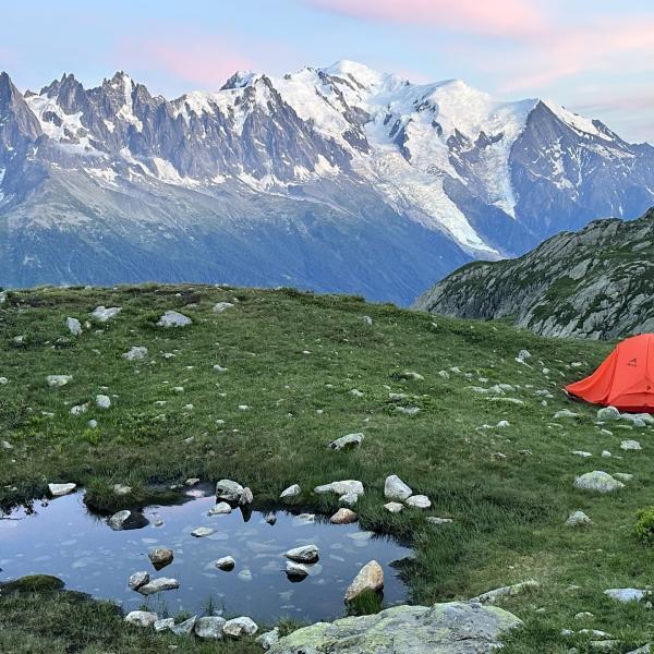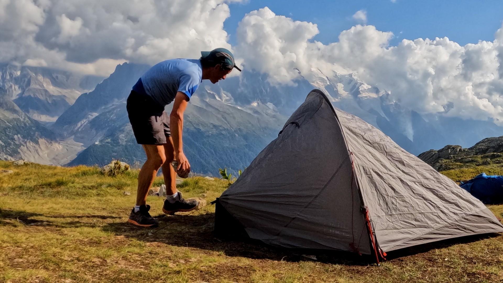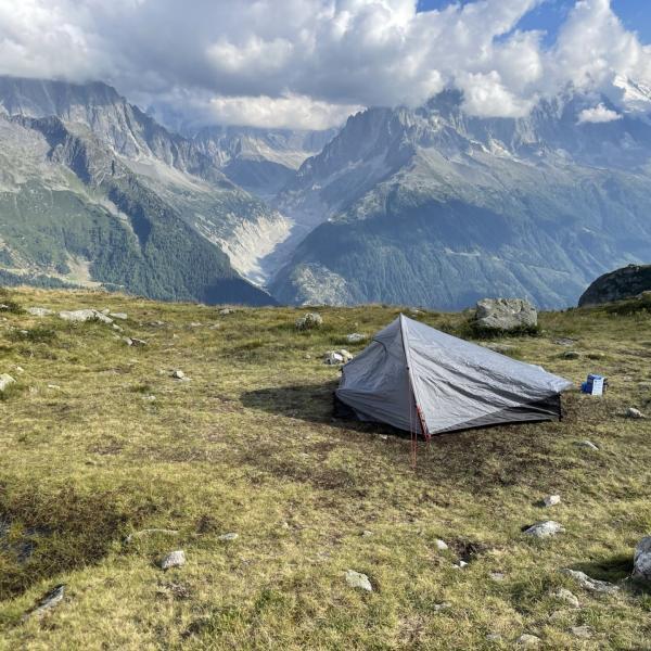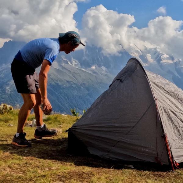 Ik heb zelf al verschillende keren de Tour Du Mont Blanc gewandeld. Om te overnachten maak ik meestal de combinatie tussen slapen in de tent en slapen in refuges. Let op: kamperen in een tent is in Italië en Zwitserland niet toegestaan, bivakeren wordt oogluikend toegestaan. Het slapen in een tent in de Alpen is een unieke ervaring op zich.